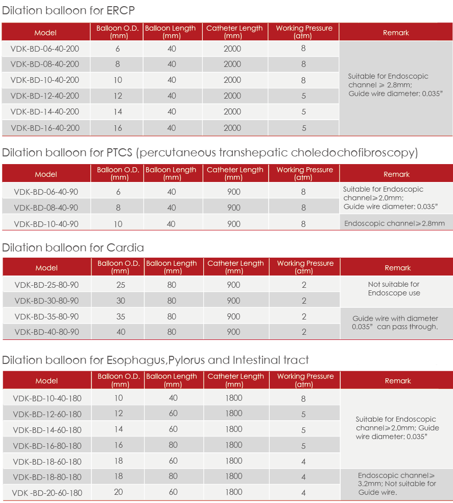 Various balloon size for choice meets different clinical demand.
